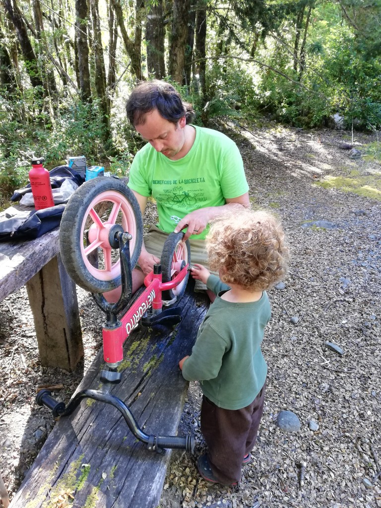 En este sentido, la bici no solo sirvió para alivianarle la caminata a Samuel, sino que a nosotros nos permitió hacer trackings más largo, que de otro modo no hubiésemos podido lograr.