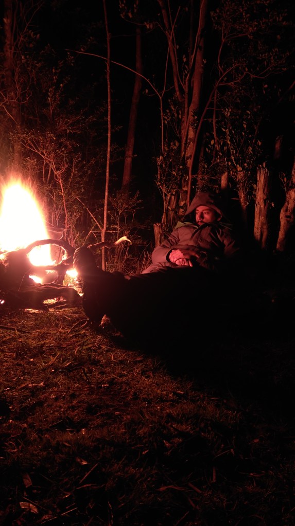 Una vez pasada Villa Lago Atravesado, sabia que ya no tendría señal telefónica, ni internet. Ahora sí, comenzamos la aventura. El día fue pasando y me fui acostumbrando al hielo, tanto en subida como en bajada. El sol que lentamente se empezaba a despedir, pronunciaba una de las mejores partes del viaje: hacer camping libre. Después de buscar y buscar, llegamos a una entrada, donde parece ser un campo donde extraen leña. Al meterme por ese camino llego a orillas del Rio Quetro, un poco alejado del camino principal y cubierto por la vegetación, encontramos un lugar ideal para pasar la noche después de uno difíciles 47 km de ruta. Ahora a montar la carpa y a descasar.