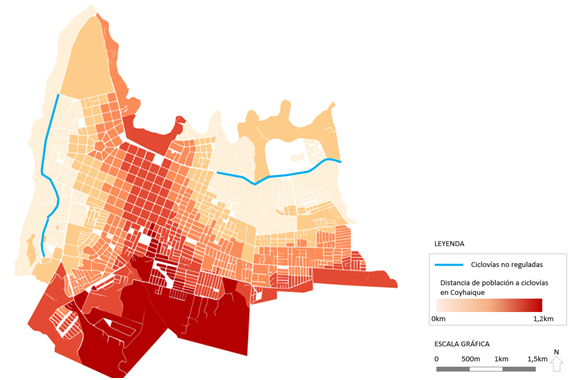 | Distancia de habitantes a ciclovías existenes.Elaboración Cicleayque, 2020 utilizando datos del INE 2017 |