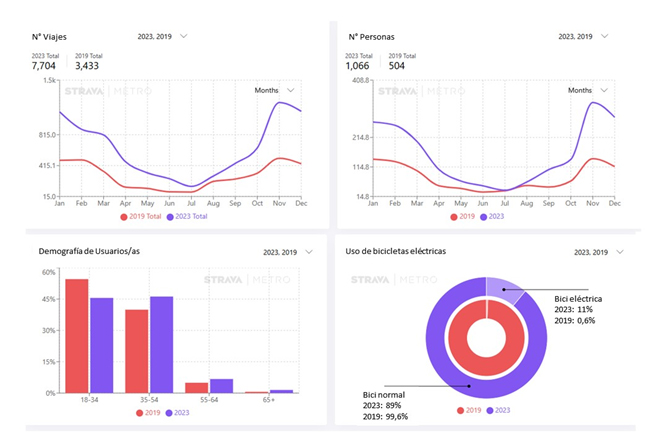 STRAVA Metro, 2024: MEDICIONES DE USO DE BICICLETAS EN COYHAIQUE PERIODO 2022-2023. Acceso restringido a través de Asociación Cicleayque.