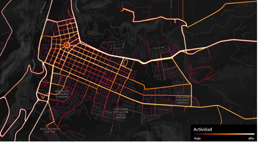 En relación a mediciones de usuarias y usuarios en ciclos, a partir de mediciones en plataforma Strava Metro, existen puntos significativos del aumento de viajes y kilómetros recorridos en los últimos años. Si bien, esta medición es sólo referencial porque depende del registro voluntario de actividades, debe entenderse como un proxi al uso de ciclos en la ciudad. A continuación, se exhiben 2 figuras que evidencian la intensidad de uso de bicicletas y el aumento de viajes en los últimos 4 años. Estos han aumentado en un 124% respecto al año 2019: